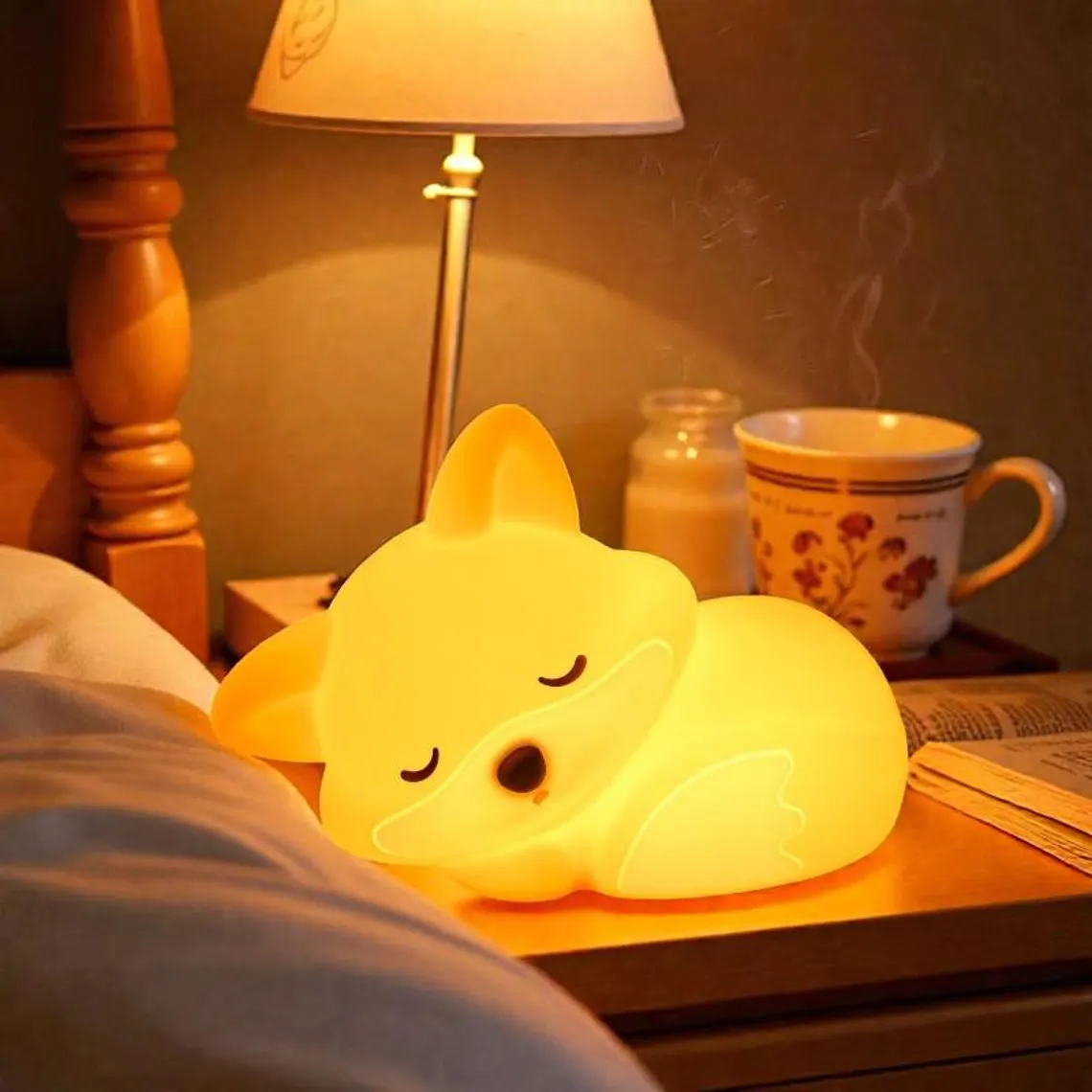 Silicone Animal Night Light – Fox & Rabbit Dimmable Nursery Lamp
