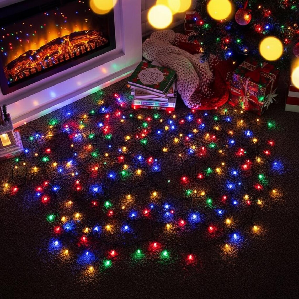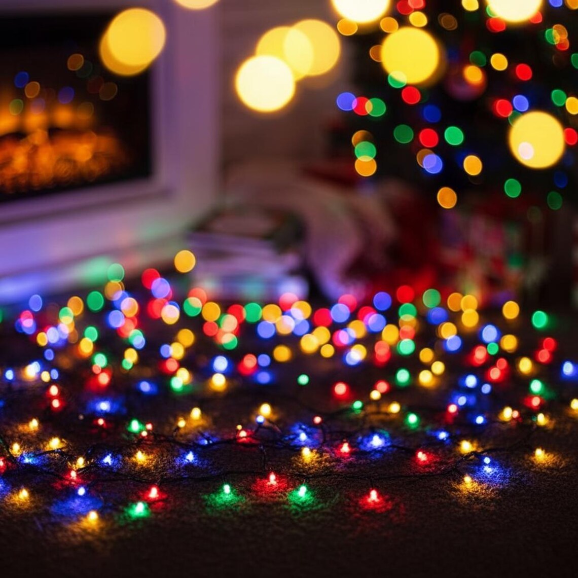 Our multicolor Christmas light garlands are designed to bring that classic, festive magic to any room. Watch as vibrant specs of red, green, blue, and yellow light dance around your space, creating a cozy and cheerful atmosphere that captures the true spirit of the season.